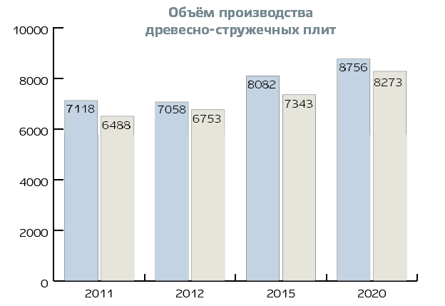 В период с 2003-го по 2012 годы производство древесно-плитных материалов в России увеличивалось ежегодно в среднем на 10%. Наибольший рост выпуска плитной продукции был достигнут в 2011-м — 17%. Однако в 2012 году темпы роста производства и потребления плит снизились до 4,6%, а в 2013-м — до 1,7%.