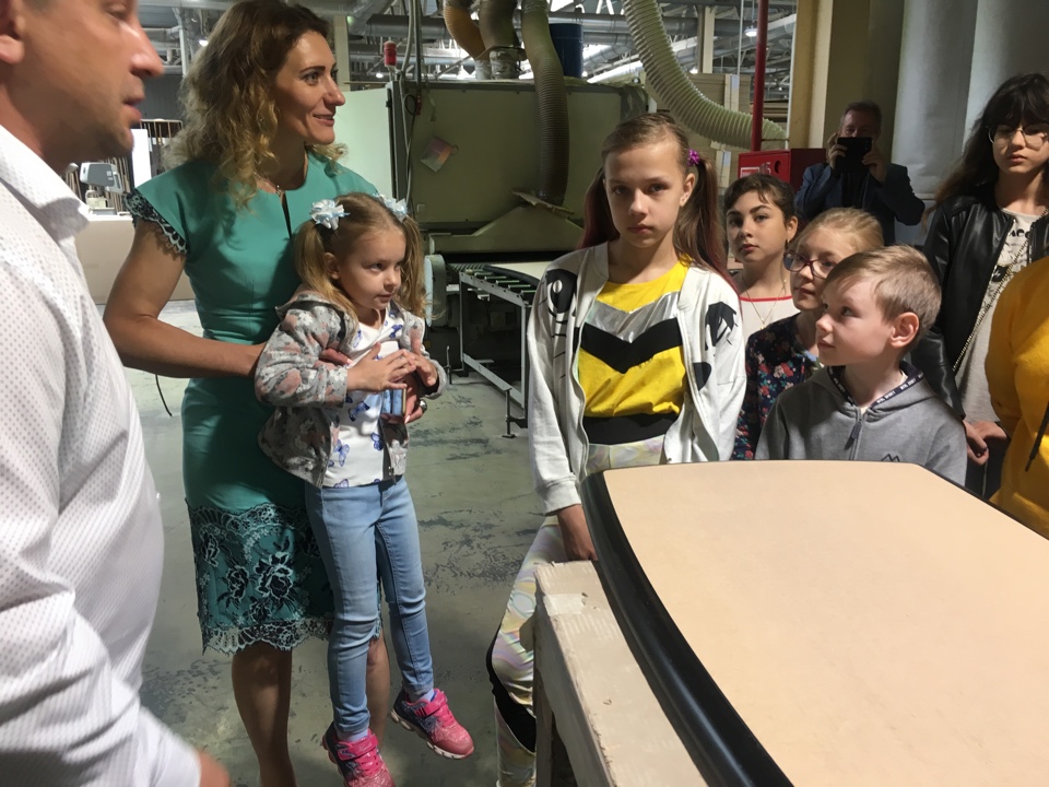Маленьким гостям показывали производство, рассказывали о том, как проектируется и изготавливается мебель, как ведётся контроль качества продукции, какие технологии используются, как помогает в работе автоматизированное оборудование.