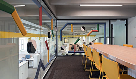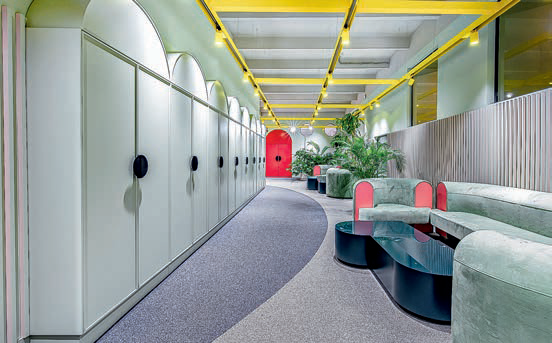 «Мы хотели, чтобы у офиса был свой ярко выраженный характер и чтобы пространство было сделано с юмором— в нём есть капля несерьёзности и неформальности,— делится главный архитектор проекта Полина Дудкина. — Мы тщательно формировали цветовую гамму пространства и подбирали материалы, чтобы сложился цельный образ. Важная деталь проекта— витрины с игрушками в зоне рецепции. Мы хотели взять игрушки и узнаваемые предметы и собрать из них мини-инсталляции, чтобы витрины превратились в арт-объекты и могли рассказать о многолетней истории «Детского мира».